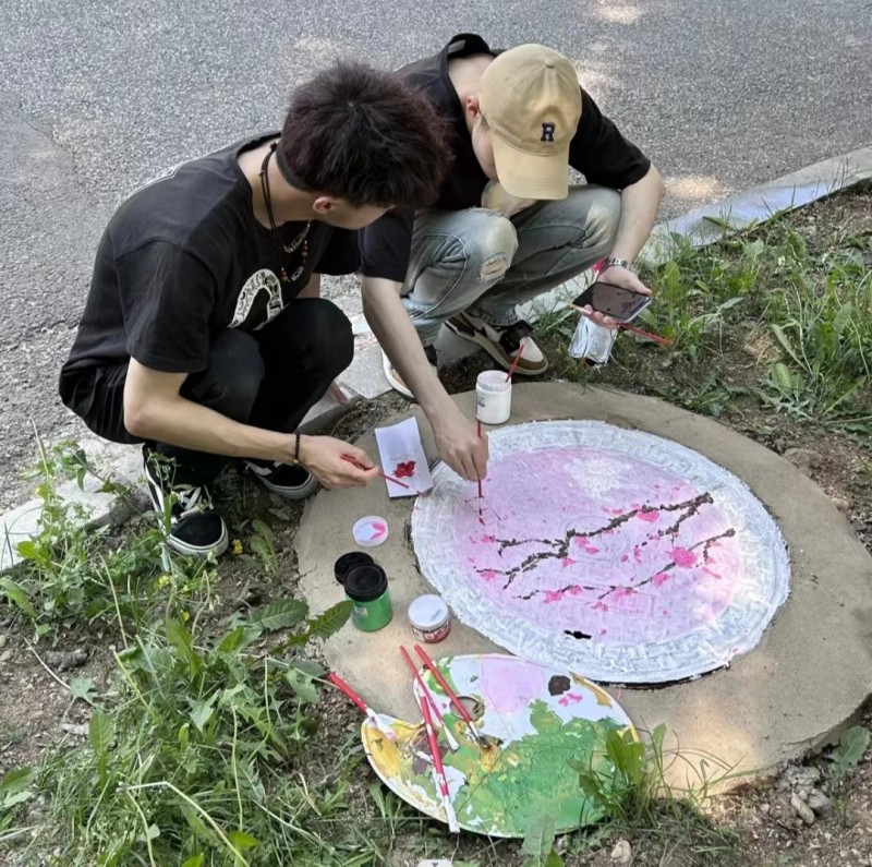 在带队辅导员王强的指导下,学院志愿者以时代风尚、保护环境、生态文明、卡通动漫等为主题来到各自负责的井盖前进行绘画。烈日炎炎,志愿者们不怕苦,不怕累,用色彩妆点道路,把寻常变为有趣,为学校的井盖穿上新装,把井盖变成“景盖”。
