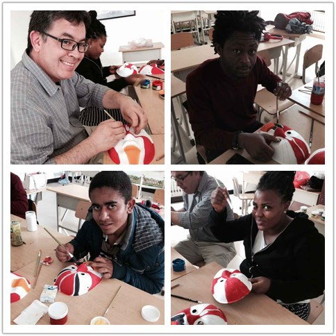 “红脸的关公、白脸的曹操、黑脸的张飞……”5月19日下午,学校的留学生们迎来了一堂妙趣横生的京剧脸谱课。留学生们现场学习京剧脸谱的画法,并动手完成了在中国的第一张京剧脸谱。