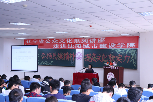 “公众文化系列讲座”由中共辽宁省委宣传部主办,辽宁省作家协会承办,是辽宁省全民文化素质提升工程的重要内容。开场温教授从红军长征路线引出民族精神的内涵——爱国之情,并从我国的领土面积、民族分布等方面诠释爱国之情。温教授借用古今中外的代表性人物,从历史入手简述了民族精神和文化的关系,通过精彩的分析和比对,强调了民族精神是文化软实力的核心部分。其后,她针对我国当前形势与当今社会存在的相关问题,提出我国要更好的利用文化手段来提升本国文化,宣传国人的价值观,只有这样才能提升和扩大国家的影响力。讲座最后,温教授结合历史大背景与时下国际局势,让学生们谨记历史教训、领会民族精神,更好的弘扬民族精神、提高文化软实力。本次讲座,温教授从民族精神的内涵、民族精神的特点、民族精神新形势下的考题、民族精神的弘扬四个方向进行阐述,精彩的演讲内容和生动地描述引发在场学生的共鸣。