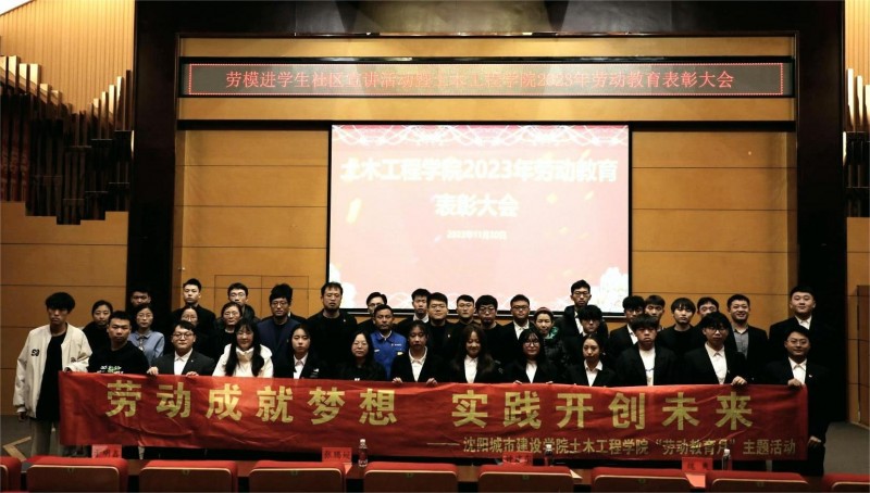 为鼓励先进,树立典型,推进学院劳动教育工作,11月30日,土木工程学院在留学生院306学术报告厅举办劳模进社区宣讲活动暨2023年劳动教育表彰大会。全国优秀共产党员、全国五一劳动奖章、全国技术能手、辽宁省劳动模范、辽宁工匠、沈阳市特等劳动模范、盛京大工匠张腾蛟,土木工程学院党总支书记、副院长钟建东,副院长于明鑫,团委书记魏爽,土木工程学院2023年劳动教育先进个人和优秀指导教师以及土木工程学院2022级全体学生参加活动。活动由于明鑫主持。