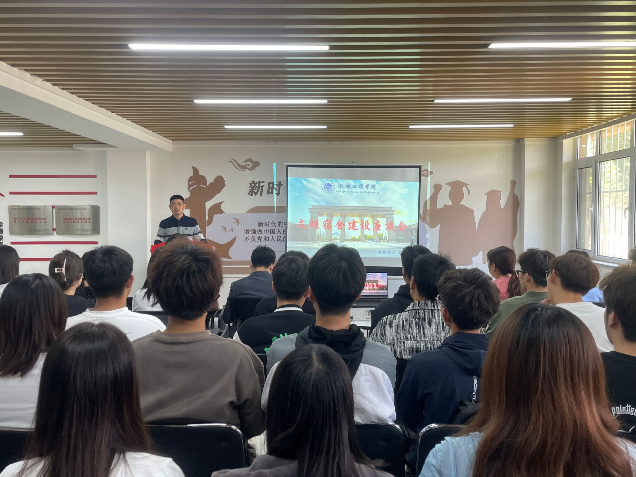为进一步增强学生安全意识,促进学生文明行为养成,推进“文明宿舍”创建工作,营造整洁卫生、文明有序、安全和谐的宿舍环境,5月16日,机械工程学院在25号楼鲁班社区多功能活动室召开“一站式”学生社区文明宿舍建设交流座谈会。本次会议由学院党总支副书记、副院长于英明主持,全体辅导员及各班级学生代表参会。