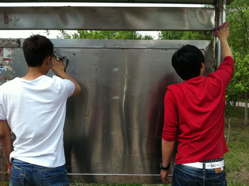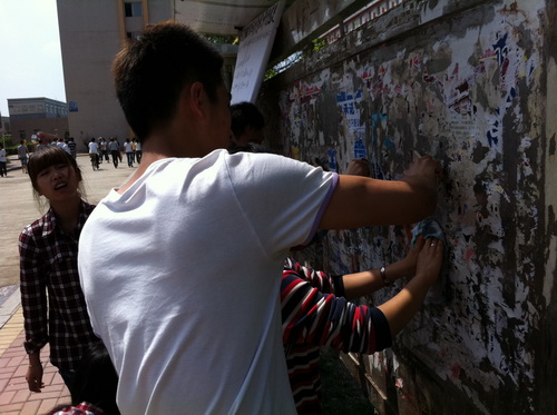 本次活动为清洗校园宣传栏。在劳动过程中,每一名入党积极分子都热情高涨,协调合作,以饱满的热情投入到劳动中,在活动中大家充分感受到了“劳动最光荣”的含义。烈日下,尽管许多人都已大汗淋漓,但依然一丝不苟认真清洗。经过2个多小时的清洗,宣传栏光亮如新,焕然一新。看着共同努力的劳动成果时,积极分子们笑的非常灿烂。