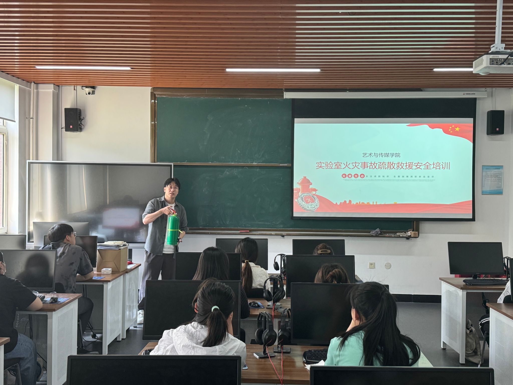 为深入贯彻落实《教育部办公厅关于做好2024年度高等学校实验室安全工作的通知》(教科信厅函〔2024〕11号)及《辽宁省教育厅关于做好2024年度高等学校实验室安全工作的通知》(辽教通〔2024〕212号)要求,确保在实验室发生紧急情况时,所有人员能够保证自身安全并能迅速、安全、有序地撤离,近日,艺术与传媒学院在思成楼219新媒体运营实验室开展实验室火灾事故疏散救援安全演练。艺术与传媒学院党总支书记吕向楠,院长助理杨越茗及全体教师、部分学生代表参加活动。