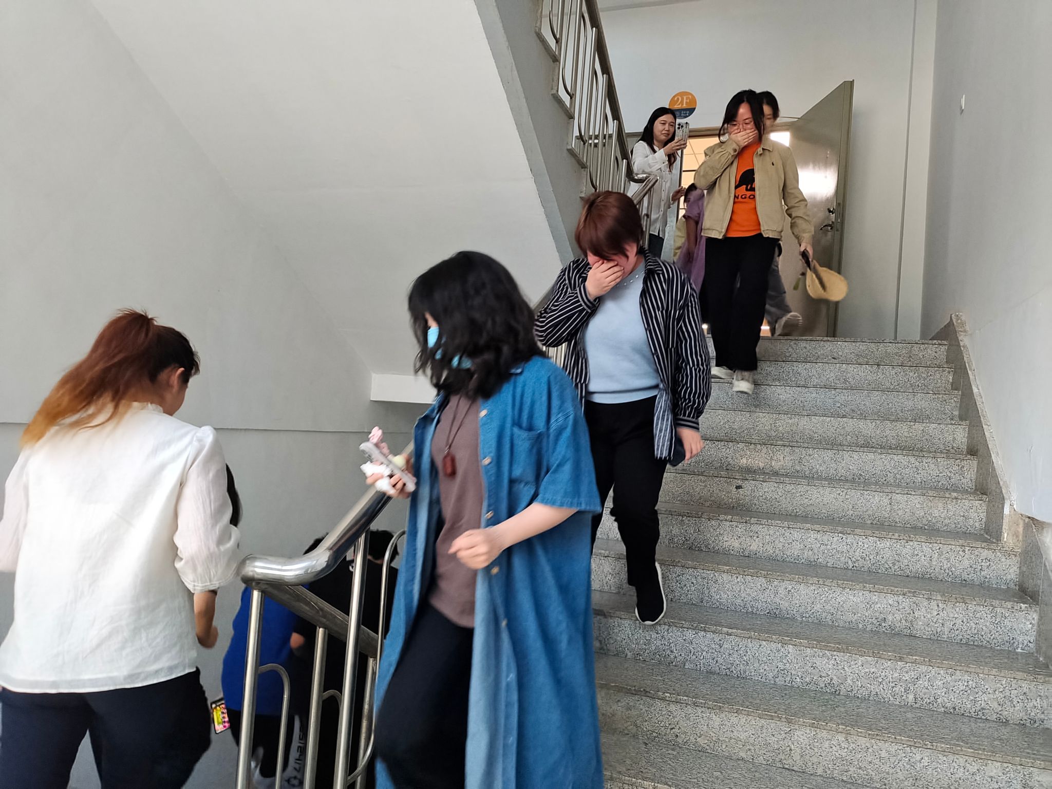 活动伊始,实验中心主任刘宇鹤开展了实验室安全知识主题培训。他从实验室事故案例入手,指出了实验室安全管理的常见问题,讲解了灭火毯以及灭火器的正确使用方法。刘宇鹤强调,为防止实验室意外事故发生,保障实验室人员人身安全及健康,并减少因事故造成的财产和人员损失,学生和老师要树立个人安全意识,注意人身安全。正式演练前,刘宇鹤还讲解了疏散流程、疏散路径及注意事项。宣布演练开始、启动应急响应机制后,距离前门最近的同学迅速打开前门,着火点周围的同学往教室前方移动,并在实验教师的协同下,大家按照预定路线有序撤离。实验教师在集合点进行了人员清点,确保了所有人员都已安全撤离,并第一时间拨打救援电话报备情况。