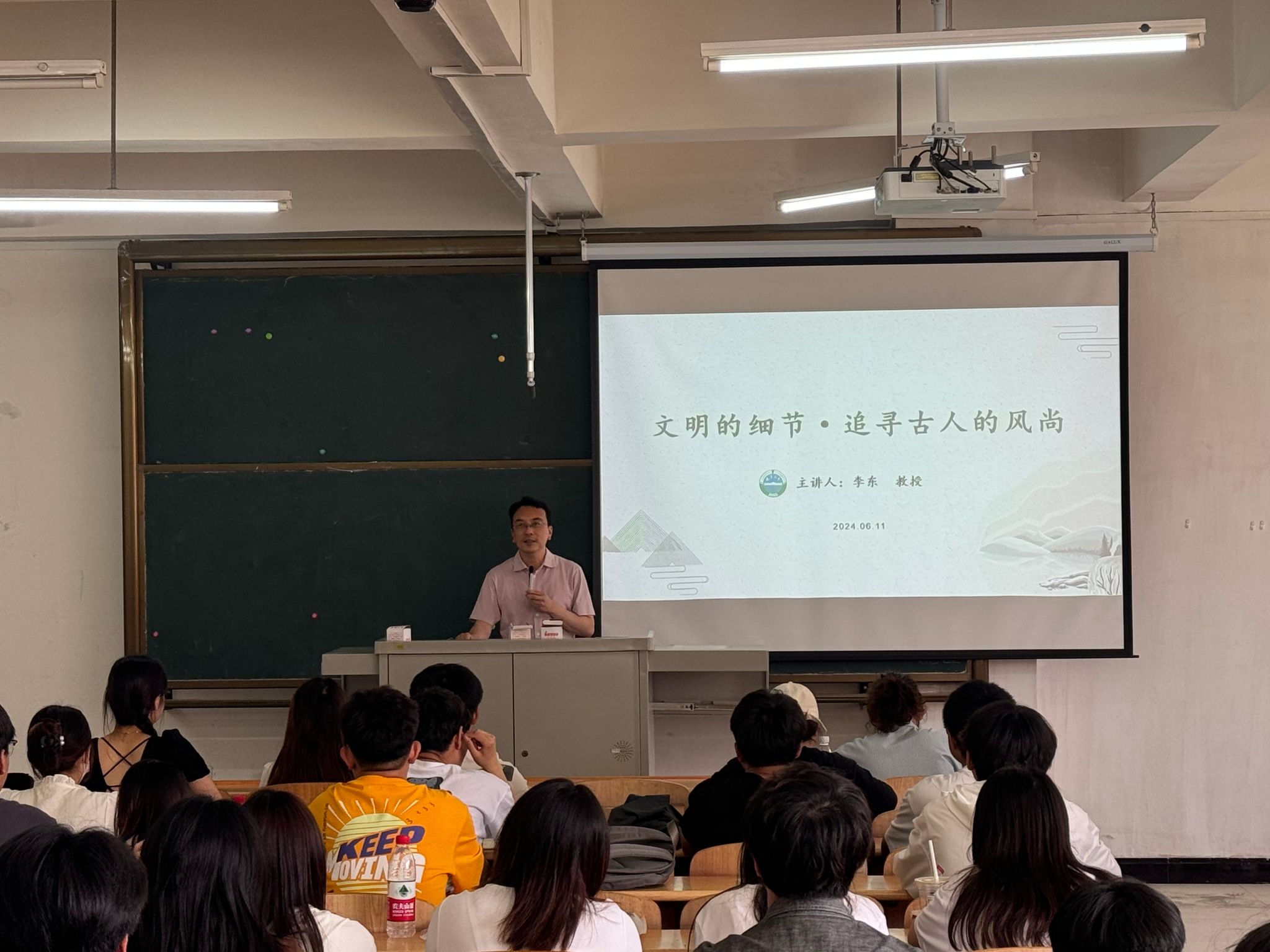 同时,李东教授与师生们共同品读了闪耀着千年智慧的《礼记·乐记》,通过大量鲜活案例,采用视频播放、多媒体演示等形式描述了一个生动立体的古代文学世界,展现了独属于中国的文学风尚,为师生们带来了一场别开生面的文学讲座。(撰稿人:徐路路;摄影:肖凌龙;通讯员:王一朱;审核人:李旭光)