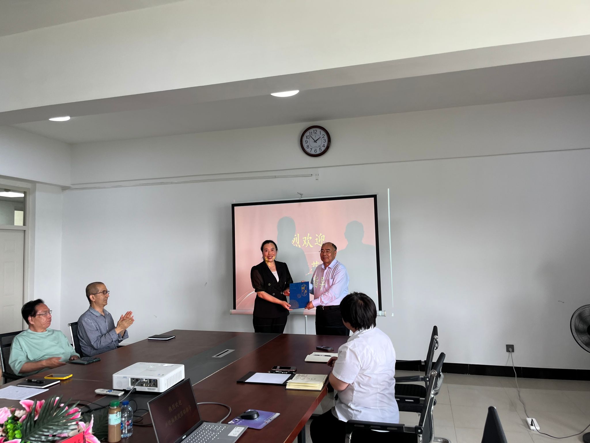 马克思主义学院院长潘红为洪晓楠颁发客座教授聘书。