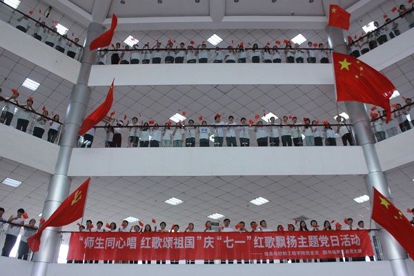 为庆祝中国共产党成立103周年,进一步增强党员干部和全体师生的凝聚力,再次掀起爱国主义精神热潮,加强党建引领、支部共建,7月2日,信息与控制工程学院党总支联合图书信息直属党支部在图书馆开展“师生同心唱 红歌颂祖国”庆“七一”红歌飘扬主题党日活动。图书信息直属党支部全体党员、信息与控制工程学院学生党支部全体党员、入党积极分子参加活动。