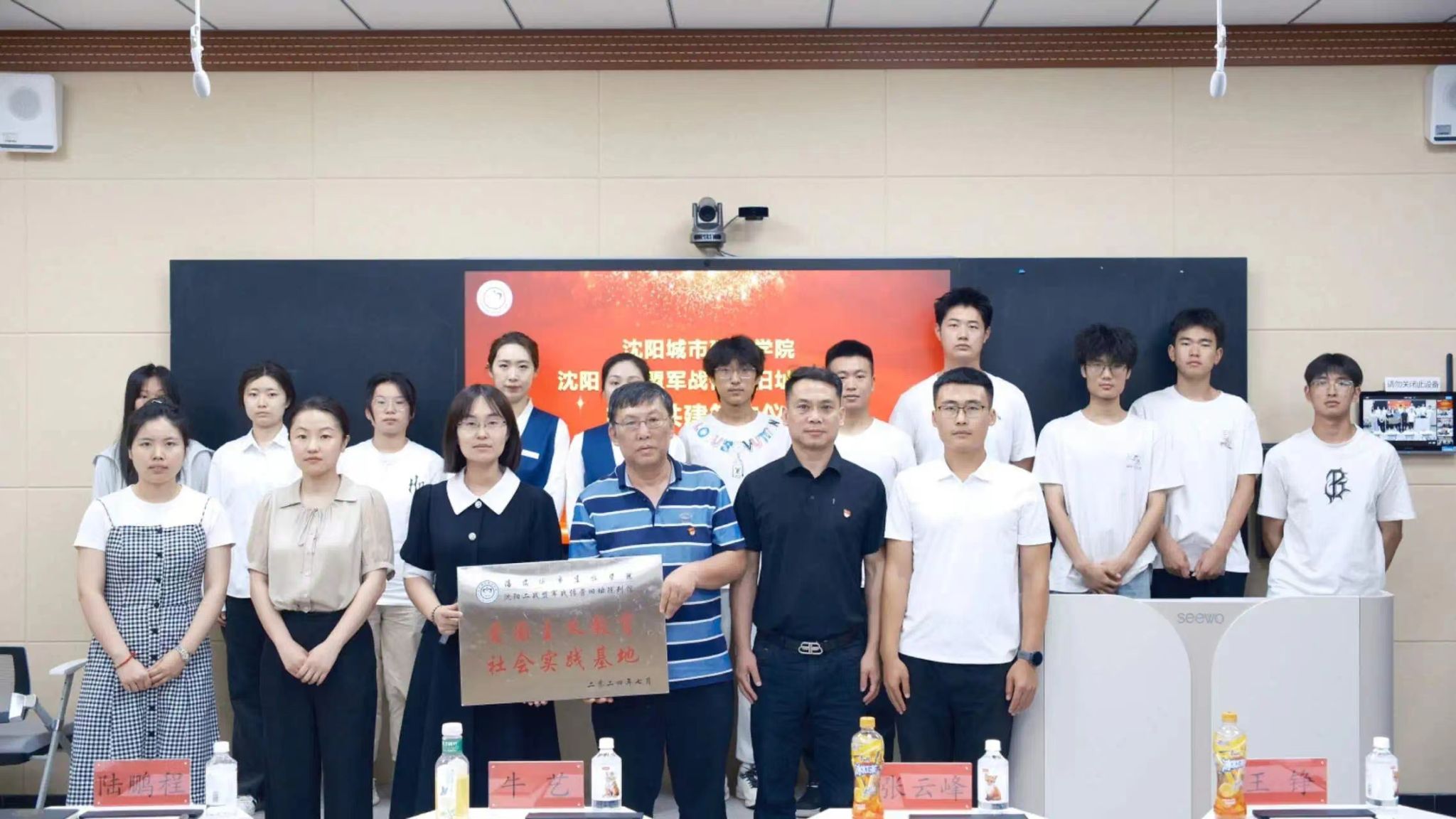 为纪念全民族抗战爆发87周年,让爱国主义精神和伟大民族精神在校园内蔚然成风,推动党史学习教育走深走实,7月5日,学校建筑与规划学院与沈阳二战盟军战俘营旧址陈列馆在创新楼105智慧教室举办校馆共建签约暨揭牌仪式。沈阳“九一八”历史博物馆副馆长张云峰,沈阳二战盟军战俘营旧址陈列馆主任王铮、副主任李卓然,学校建筑与规划学院党总支书记、副院长牛艺,党总支副书记、团委书记陆鹏程,学生第一党支部书记、辅导员王榕以及纪念馆相关人员,学院师生党员及入党积极分子代表共计40余人参加仪式。仪式由陆鹏程主持。