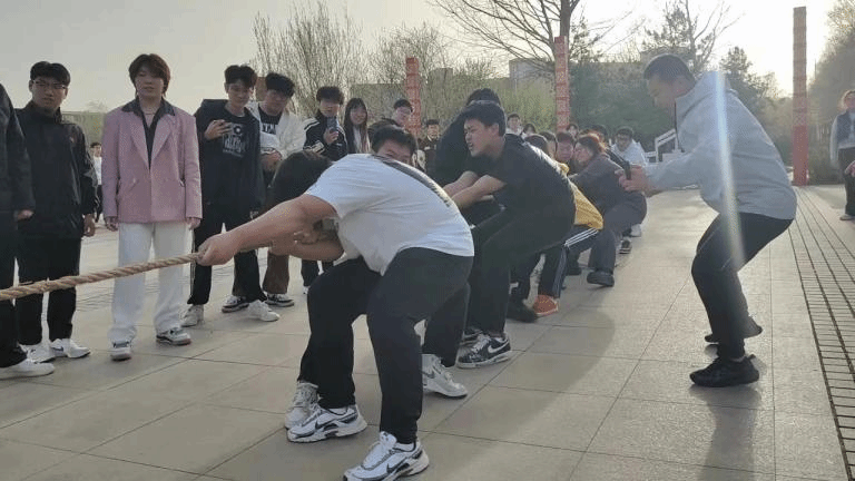 机械工程学院在音乐广场举办第七届“城建杯”大学生体育文化节拔河比赛。比赛本着公平、公正、公开的原则,由学校体育教研部教师马铭远、赵雷、孙嘉政、张嘉齐担任裁判。参赛队伍剑拔弩张,参赛选手个个激情饱满。