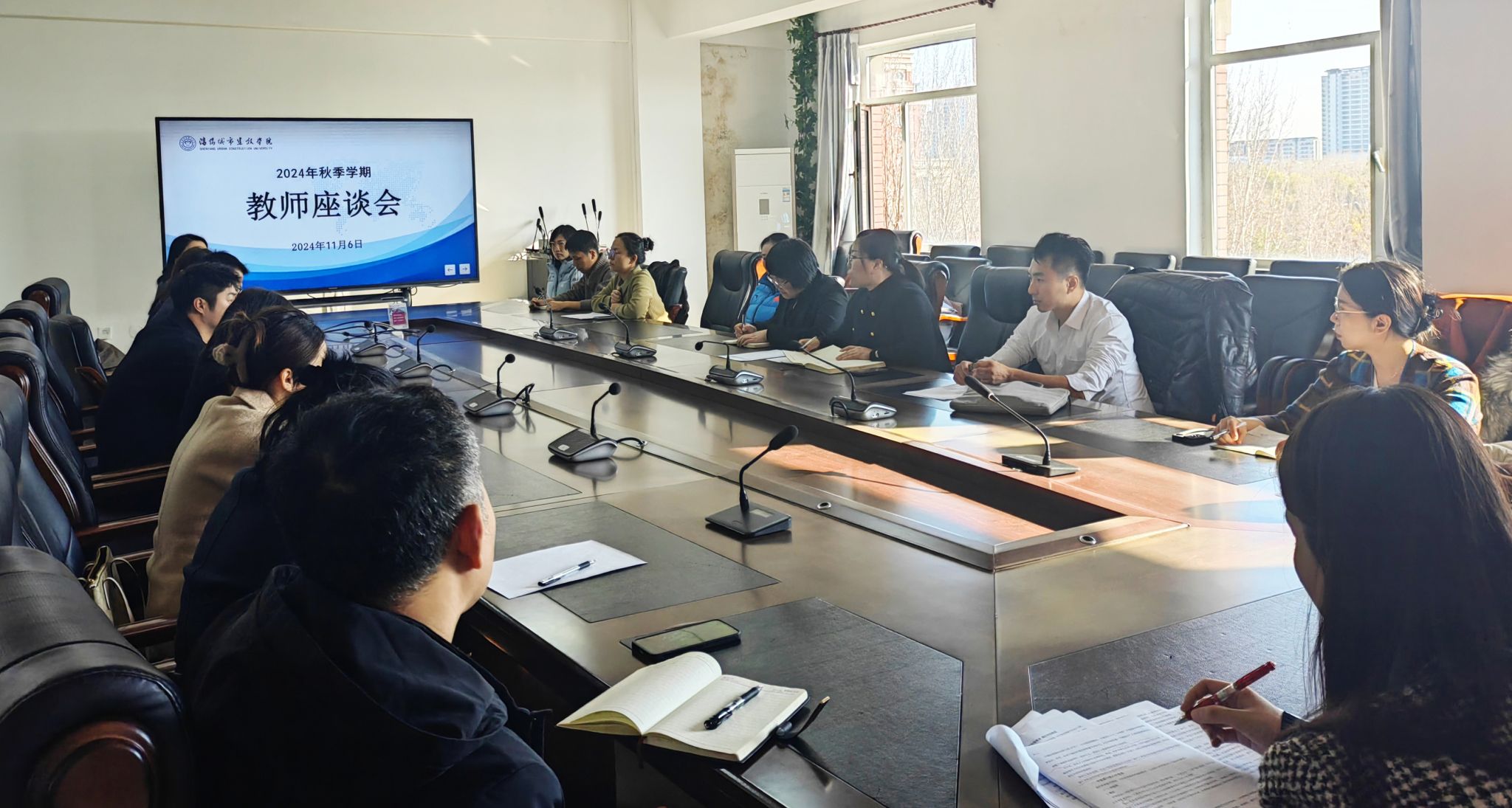 为深入了解一线教师开展教育教学情况,探讨学生培养以及教师发展等方面的问题与经验,进一步推动学校教学工作优化与提升,促进学校高质量发展,11月6日,学校在留学生院404会议室召开2024年秋季学期教师座谈会。各教学单位的教师代表参加座谈会。座谈会由教务处处长田悦主持。