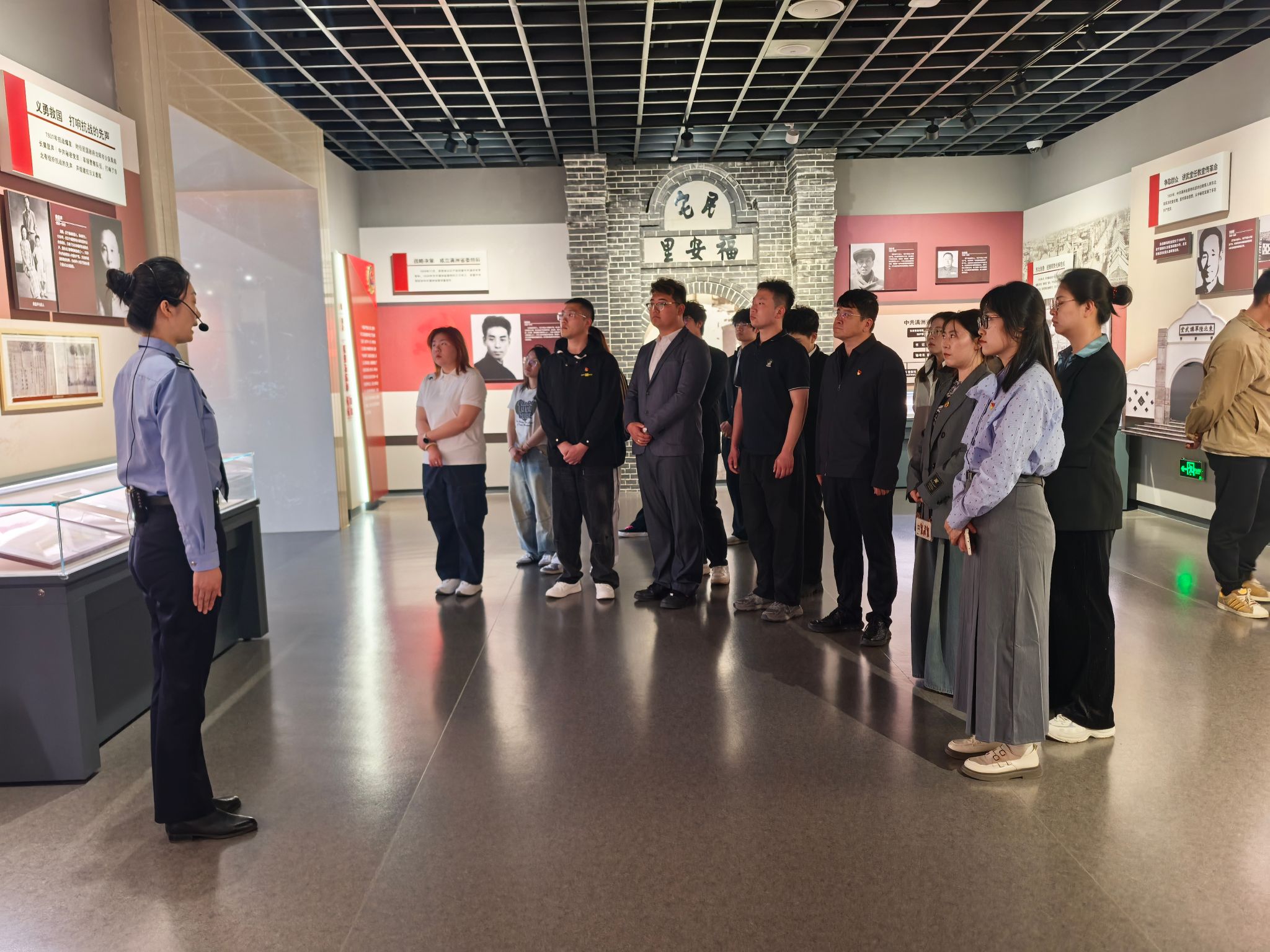 在博物馆讲解员的带领下,师生党员依次参观了“公安历史”“英烈事迹”“警用装备”“荣誉功勋”等主题展区。从解放战争时期沈阳公安的初创历程,到新时代智慧警务的创新实践,一幅幅珍贵的历史照片、一件件斑驳的实物展品、一段段震撼的影像资料,生动展现了沈阳公安队伍忠诚担当、英勇无畏的精神风貌。在英烈纪念墙前,全体人员肃立默哀,深切缅怀为守护人民平安献出生命的公安英烈。