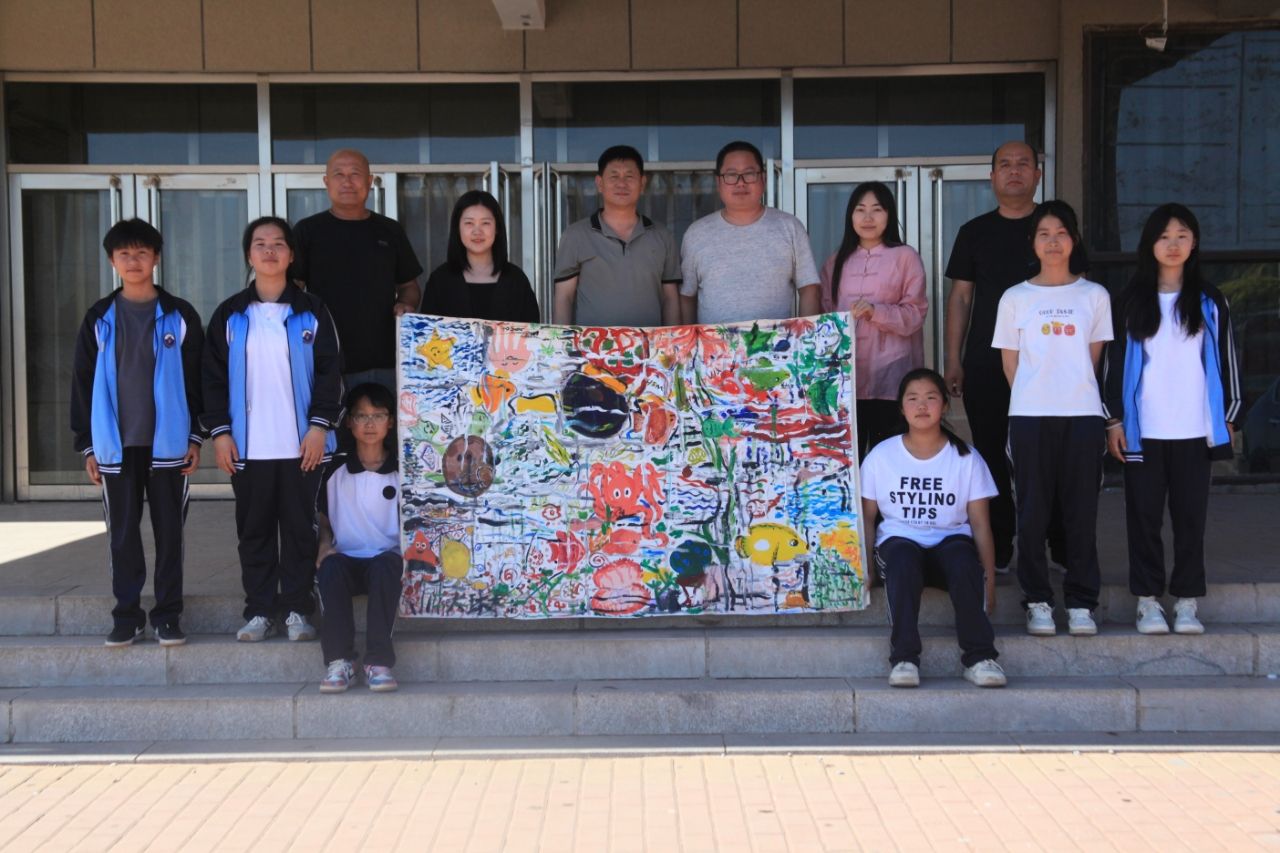 启动仪式结束后,王海利为同学们带来了一堂生动有趣的《创意绘画》课。他采用启发式、体验式教学模式,以“海洋世界”为创作母题,与巴什罕中学美术教师杨树森共同引领学生们用画笔与深邃海洋展开“对话”。课堂上,同学们热情高涨,积极参与,共同在画布上描绘了栩栩如生的海洋生物群像,让这幅共创作品成为美育课堂中温暖的集体记忆。