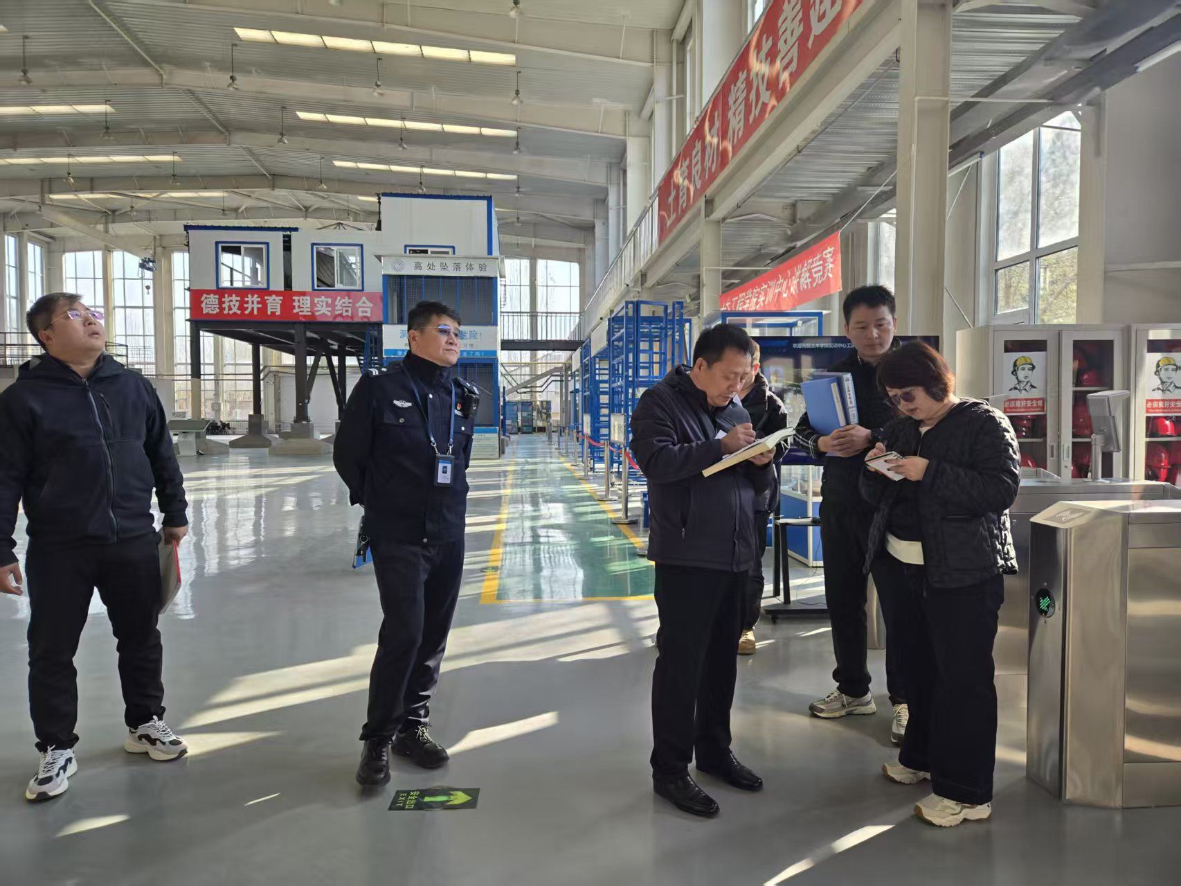 实训基地设备密集、人员流动频繁,是安全风险集中区域。检查组重点核查安全责任制落实情况,查阅安全管理制度、设备操作规程及责任分工台账,与基地负责人、实训指导教师交流日常巡查、隐患整改及学生安全培训情况。同时,排查疏散通道畅通性、应急照明与疏散指示标志完好度,核查电路敷设规范性,测试灭火器压力值与消火栓出水状态。检查组要求实训基地要加强设备维护,定期组织应急演练,守住实训教学安全底线。