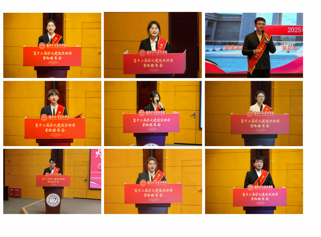 宣讲环节,9名宣讲团成员依次登台,结合自身成长经历与专业特色,带来了一场内容丰富、干货满满的学风建设盛宴。从互助学习小组协作中共同进步的宝贵经验,到思想引领、实践锻炼、品德修养等多个维度,宣讲员们阐述了新时代大学生全面成长的路径与方法,为同学们树立了全面发展的榜样,分享了勤学笃行、研学融合、以学促技等结合专业学习中的探索与收获,为现场同学带来了深刻的思想启迪与精神激励。