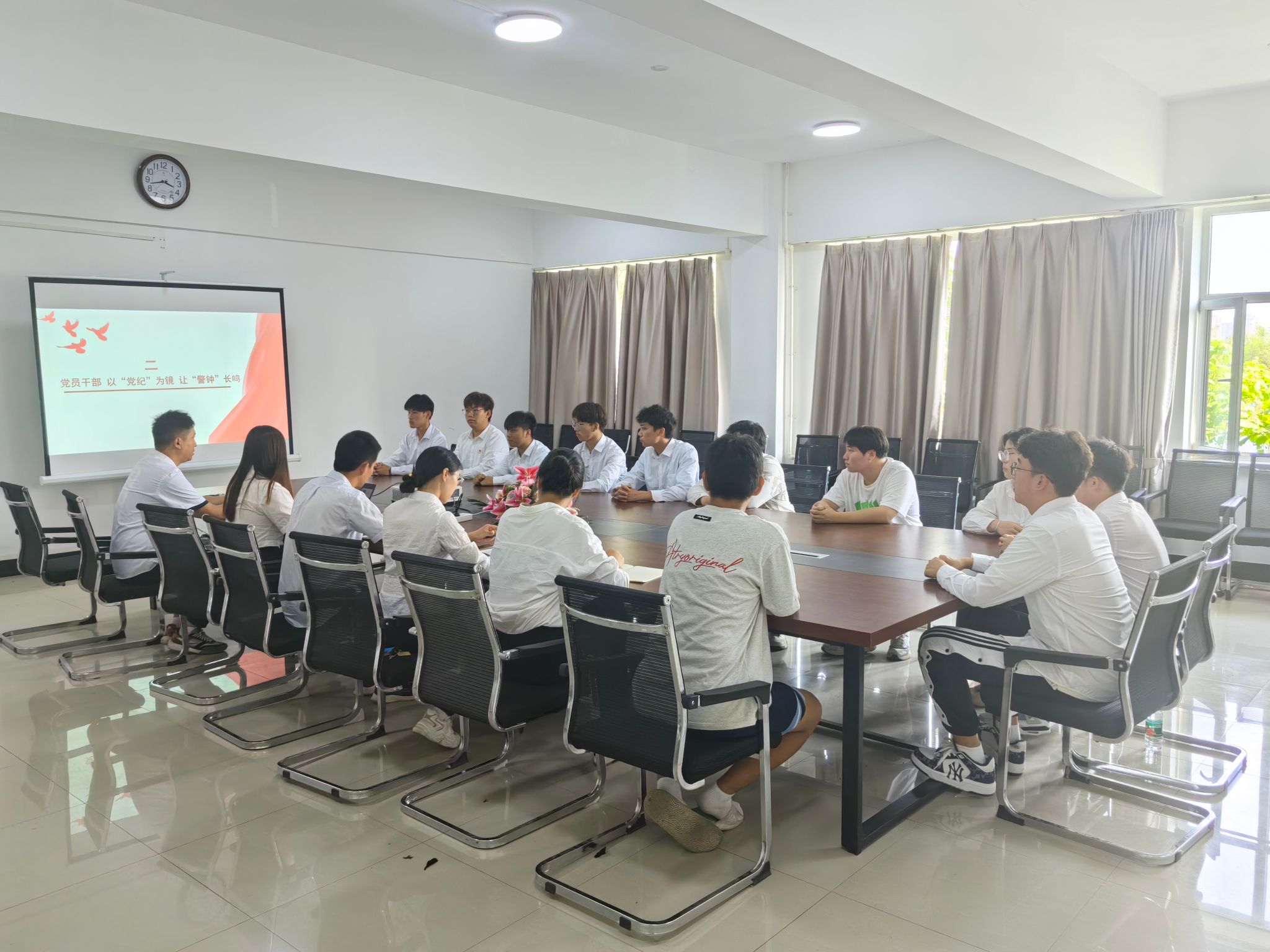 在党的建设不断深化和新形势对党员提出更高要求的背景下,近日,现代产业技术学院在综合楼308B会议室组织开展“迎七一·强党性·忆初心”主题党日活动暨学生党支部书记讲授党纪学习教育专题党课。党课由学院学生党支部书记牟婷婷讲授,旨在进一步加强师生党员的党纪意识,引导积极分子更加主动地向党组织靠拢。