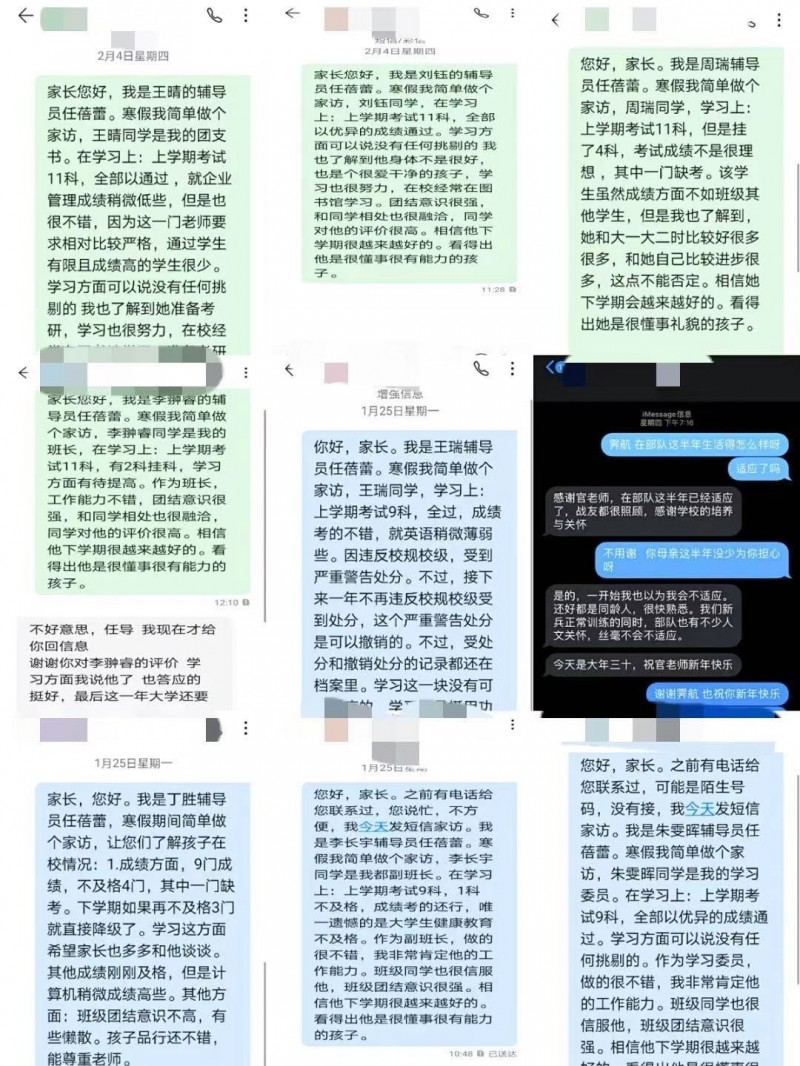 建筑与规划学院辅导员通过电话、短信、QQ、电子邮件、微信、腾讯会议以及书信等多种形式开展家访活动,向受访学生和学生家长送上了学院的新春祝福!辅导员向学生家长介绍学校的学生资助、学风建设、文明素养、诚信教育、健康教育、创新创业、就业指导、征兵工作、招生工作等工作开展情况,介绍了学生在校期间的思想、学习、生活各方面的表现。针对人际交往困难、学业困难等特殊学生家庭,辅导员与学生家长进行了深入交流,让家长更加详细的了解学生在校学习和生活情况和存在的困难,以便更有针对性的帮助学生解决问题,实现家校合作,共同努力做好学生的教育和培养。学生家长纷纷表示愿意积极配合学校工作,共同促进学生成长成才,并对学生的教育和培养提出了建议和意见辅导员进行了认真记录和总结,为下一步校家联合开展工作积累经验。