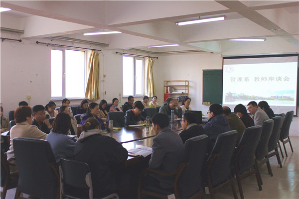 近日,管理系在出新楼512会议室召开教师座谈会。党委书记崔景懿出席会议并和教职工进行了座谈。会议由管理系主任毕岩教授主持。全系教师参加了会议。