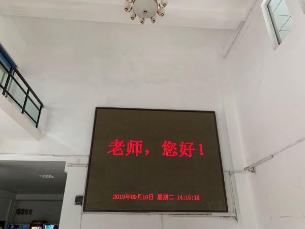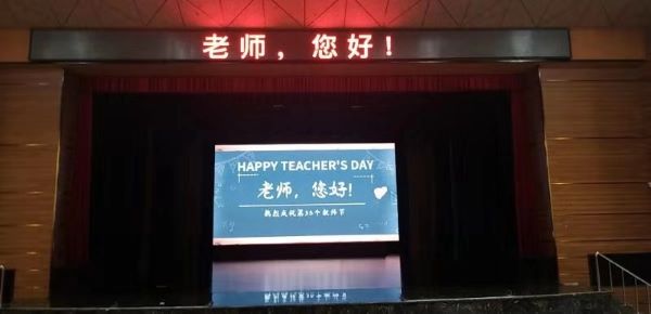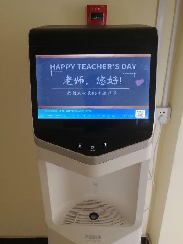 活动中,各教学楼的LED屏均写着:“老师,您好!”。此外,教学楼内的自动饮水机等设备上也精心展示着向教师致敬的话语和内容。不少校内商铺也贴心的在店内电子屏上打出了“老师您好”的字样,为老师们送上祝福。