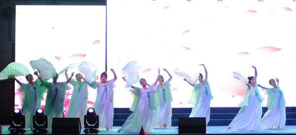 伴随着校园宣传片的播放,晚会正式拉开了序幕。开篇《我们都是追梦人》彰显了欢迎新同学的火热之情,各个社团的精彩展示点燃了全场气氛;应用科技学院教师张舒瑞携学校国旗护卫队演绎《我站立的地方是中国》,激励着城建学子将个人奋斗理想与国家命运紧密相连的爱国情怀;鼓乐《鼓舞中国》、情景朗诵《不一样的年代一样的青春》、合唱《团结就是力量》,展现了迎接中华人民共和国成立70周年的宏大气氛,激发了大家的民族自豪感和爱国热情;市政与环境工程系教师刘然演唱的《中华孝道》,展现了传承中华孝德文化;礼仪展示《云端之上》和街舞《Bomb》充分表达了莘莘学子的朝气与才华、青春与时尚;舞蹈《左手指月》、《采薇》、歌曲《长歌行》让大家感受到了中国古典诗词所蕴含的典雅清丽之美;留学生带来的《非洲风情》促进了中国文化与世界文化的交流融合;歌伴舞《美丽中国梦》向祖国献上诚挚的愿景与祝福;由2019级辅导员代表带来的朗诵《厉害了,我的国》回顾了祖国一路走来的辉煌历程,一起为祖国母亲献礼,奏响伟大的新时代;由校合唱团带来的《银杏树》充分表达了学校师生爱党爱国爱校的情怀,坚定了为学校事业改革发展做出积极贡献,在实现中国梦的生动实践中放飞青春梦想;晚会在图书馆教师李丹演唱的《我的祖国》中落下帷幕,激发了学生的追梦赤子心与爱国热情。