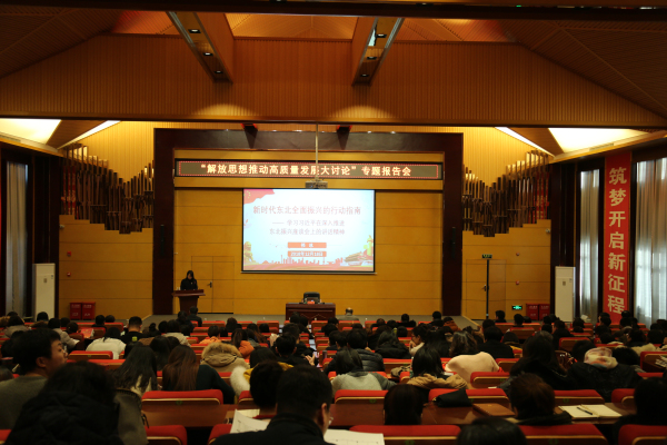为深入学习宣传贯彻习近平总书记在辽宁考察时和在深入推进东北振兴座谈会上的重要讲话精神,进一步落实学校“解放思想推动高质量发展”大讨论工作,12月18日下午,beat365在国际交流中心报告厅举办了“解放思想推动高质量发展大讨论”专题报告会。