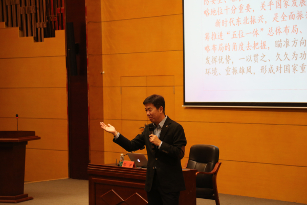 会上,祁冰副教授从新时代东北全面振兴的重大意义、新时代东北全面振兴的根本要求、新时代东北全面振兴的坚强保证三个大方面进行了解读。祁冰副教授的讲授语言生动、案例丰富,不时博得大家阵阵掌声。