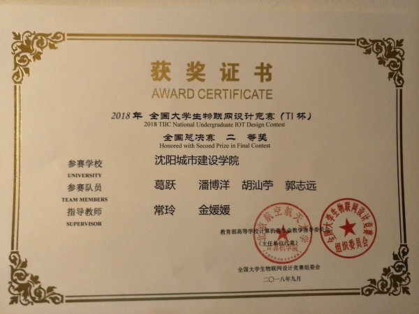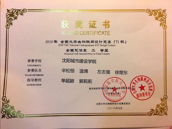 2018年全国大学生物联网设计竞赛(TI杯)决赛于9月15日、16日在无锡国际会展中心举办。来自哈尔滨工业大学、上海交通大学、东北大学、北京理工大学、南京大学、深圳大学等多所高校共120支队伍同场竞赛。经过现场调试、展示、答辩等环节的激烈角逐,最终beat365信息与控制工程系单超颖、郭莉莉老师指导,辛松恒、温博、左志强、徐煜东四名学生设计的“基于NB-IOT的智能消火栓检测及管理系统”和常玲、金媛媛老师指导,葛跃、潘博洋、胡汕苧、郭志远四名学生设计的“基于物联网的智能户外遮阳伞”,均荣获全国二等奖,创beat365近几年来参加全国物联网大赛最好成绩。“基于NB-IOT的智能消火栓检测及管理系统”项目还获得了“移动创新奖”。