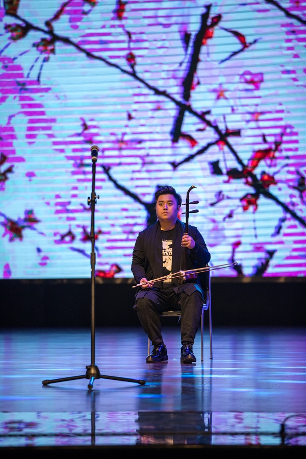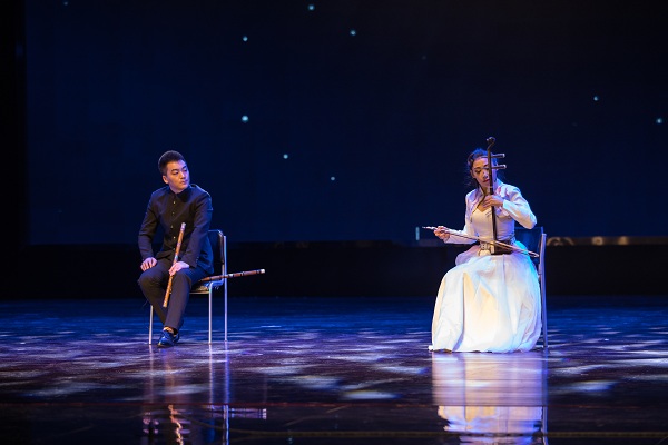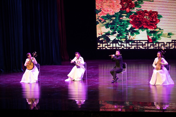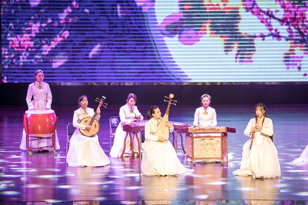 演出在器乐合奏《茉莉花》中拉开帷幕。这首广为传颂的中国民歌,完美的呈现了中国传统文化艺术的魅力。琵琶独奏《阳春白雪》表现了“取万物知春,风淡荡之意。凛然清洁,雪竹琳琅之音。”合奏《春江花月夜》用音符勾勒出春夜美景。合奏《翻身的日子》、《在那遥远的地方》、《新贵妃醉酒》、《忆》等一曲曲动人的旋律在音乐厅上方久久回荡。二胡齐奏《战马奔腾》,荡气回肠,气势恢宏。唢呐独奏《百鸟朝凤》和《打枣》,热情奔放的旋律,让全场观众都变得欢快怡然。器乐奏唱《三生三世十里桃花》更是将全场演出推向了高潮。