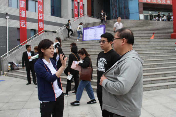 学校高度重视迎新工作,学校领导温景文、李厚艳、逄淑伟、张海玲等深入报到工作一线,听取有关人员的工作汇报,听取工作汇报。温景文一行还到新生宿舍了解情况,查看床品被褥的配备,与家长和学生进行交流。