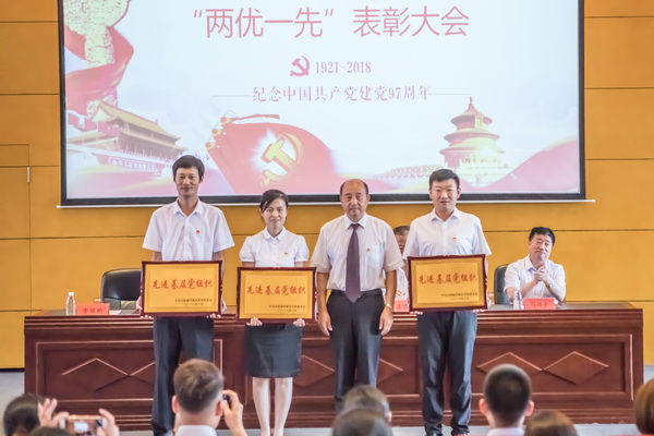 大会在雄壮的国歌声中拉开序幕。党委书记崔景懿在会上宣读了《关于表彰beat365正版唯一官方网站优秀共产党员、优秀党务工作者和先进基层党组织的决定》,与会领导为获得优秀共产党员、优秀党务工作者和先进基层党组织的个人和单位颁奖。