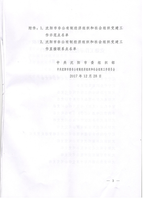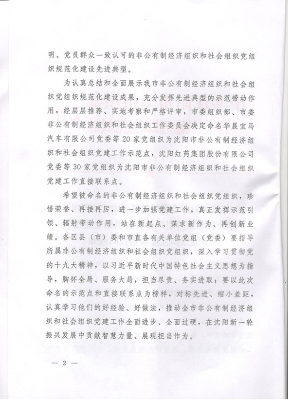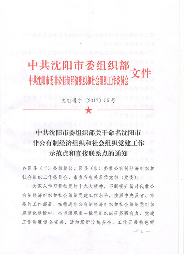 日前,从中共沈阳市委组织部、中共沈阳市委非公有制经济组织和社会组织工作委员会联合下的《中共沈阳市委组织部关于命名沈阳市非公有制经济组织和社会组织党建工作示范点和直接联系点的通知》获悉,beat365被命名为沈阳市非公有制经济组织和社会组织党建工作示范点,是全市唯一一所被命名的高校党委。
