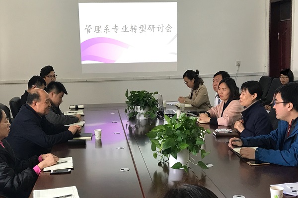 4月17日,管理系在第三教学楼会议室召开专业转型研讨会,党委书记崔景懿出席会议并作讲话。会议由系主任毕岩教授主持。