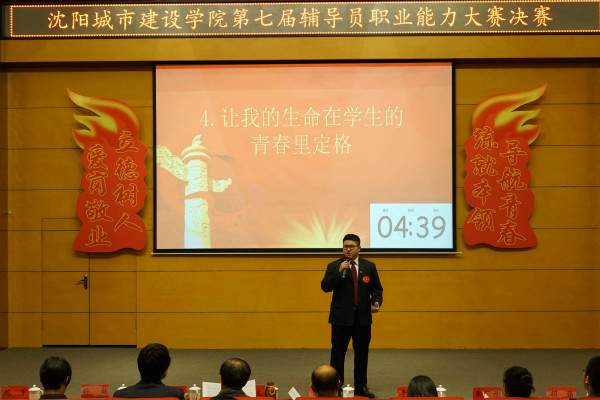 大赛现场,辅导员代表精心编排的诗朗诵节目《辅导员礼赞》寓意深刻、充实生动,歌颂了辅导员爱国守法、敬业奉献、育人为本、为人师表、终身学习的职业情操和师德风尚。