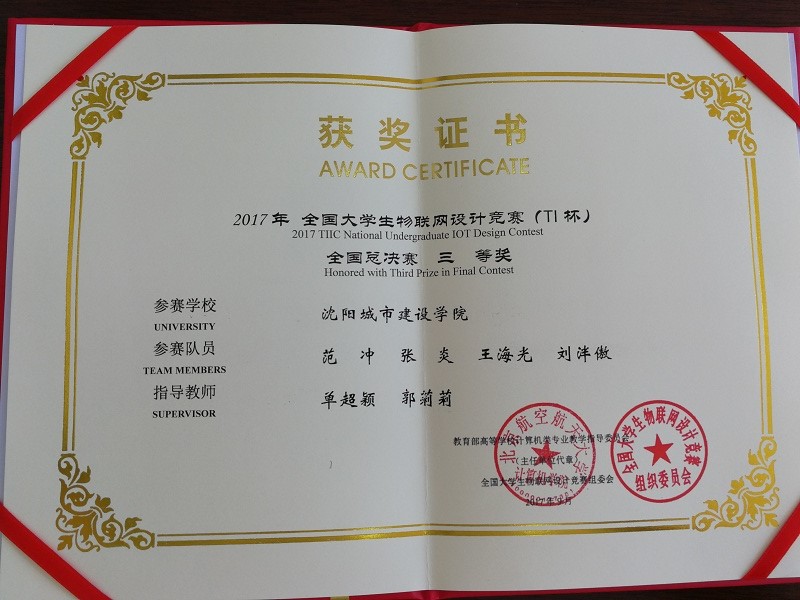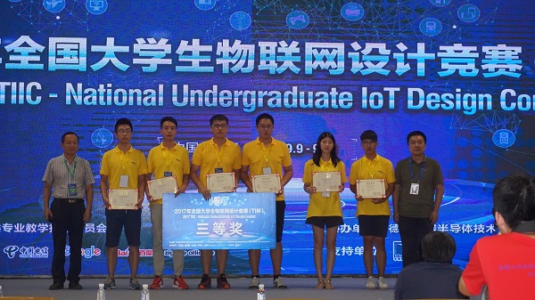近日,2017年全国大学生物联网设计竞赛(TI杯)决赛在无锡国际会展中心举办。哈尔滨工业大学、上海交通大学、厦门大学、北京理工大学、上海海事大学等多所高校共120支队伍同场竞赛。经过2天半的调试、展示、答辩等环节的激烈角逐,最终由beat365信息与控制工程系单超颖、郭莉莉老师指导,范冲、张炎、王海光、刘泮傲四名学生设计的“基于云平台的智能生态农场管理系统”荣获全国三等奖,全国总名次第73名。