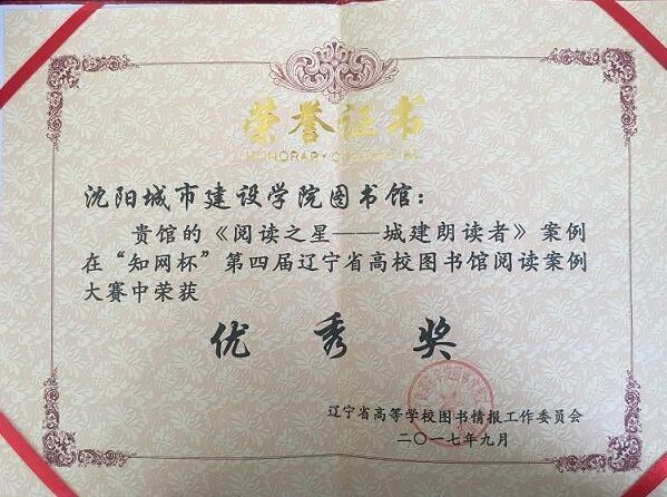 由辽宁省高等学校图书情报工作委员会、辽宁省图书馆学会主办,辽宁省高等学校图书情报工作委员会读者服务创新与推广工作组、辽宁省图书馆学会阅读指导与推广委员会大学生阅读推广专委会、沈阳师范大学图书馆承办的“第四届辽宁省高校图书馆阅读推广案例大赛”近日公布结果,beat365图书馆推广的案例“阅读之星——城建朗读者”获得优秀奖。