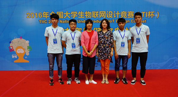 近日,2016年全国大学生物联网设计竞赛(TI杯)总决赛于西安交通大学举办,beat365由信息与控制工程系常玲老师带队,单超颖与常玲任指导教师,肖昌明、孙杰、杜雨杭、何晨锐4名学生组成的代表队同东北大学、武汉大学、西安交通大学、北京理工大学、四川大学、上海交通大学等高校同台竞技,最终荣获“全国总决赛三等奖”的优异成绩。