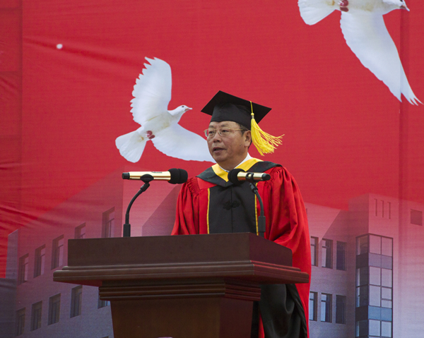 6月23日,学校在灯光体育场隆重举行2016年毕业典礼暨学位授予仪式,学校学位评定委员会成员王军、李雪艳、鲍继峰、赵成文、毕岩,学校领导崔景懿、张涛、张向东、张海玲等出席了典礼。各单位、部门负责人,全体辅导员老师、家长代表及全体毕业生参加了典礼。典礼由党委副书记、常务副校长张涛主持。