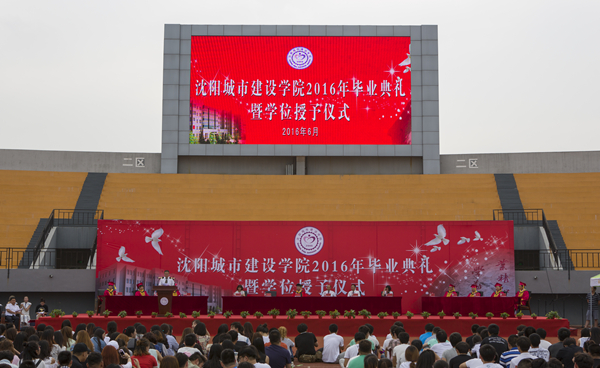 在庄严的国歌声中,典礼正式开始。副校长李雪艳宣读了2016届毕业生毕业及学位授予情况,校长、学位评定委员会主席王军为各专业学生代表进行了授位,学位评定分委员会主席、主任、副主任为毕业生代表颁发毕业证书。随后,副校长张海玲宣布了获得学校优秀毕业设计论文、学校优秀毕业生及辽宁省普通高等学校优秀毕业生的名单,党委书记崔景懿和副校长张向东、李雪艳分别为获奖学生颁奖。