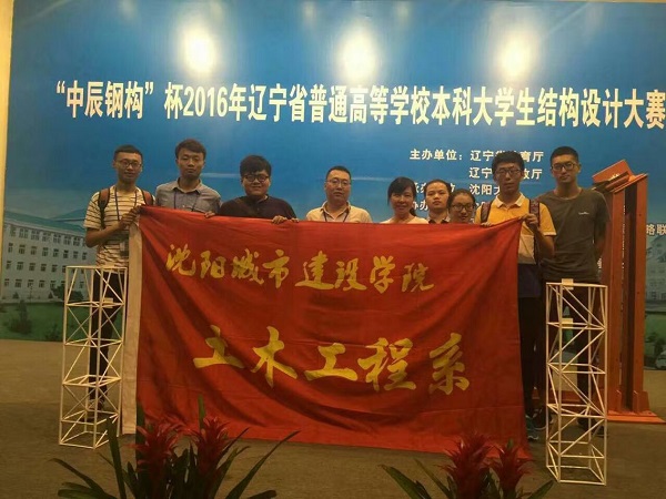 7月6日到9日,2016年辽宁省普通高等学校本科大学生结构设计竞赛在沈阳大学举办,共有来自省内24所高校49支代表队近300名师生参加,beat365共派出两支代表队参加本次大赛,均获佳绩。土木工程专业14级学生岳红辉、李强、张培钇三人组队制作的作品“同路人”以总成绩排名第18获得三等奖,以其精湛的制作工艺获得大赛专项奖“最佳制作奖”;土木工程专业14级学生龚娅楠、徐培东、付献伟三人的作品“刚柔相济”成绩优异,总成绩排名第31名。