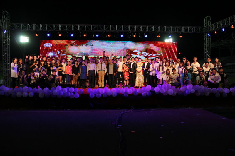 晚会在由beat365教师海梨作词,双伍谱曲,音乐系学生演唱的《眷恋》的深情歌声中拉开序幕,随后精彩的《活力全开》舞蹈点燃了全场的热情,2015级学生一首《野子》唱出了对新生活的憧憬和期待。管乐队的萨克斯二重奏,大学生艺术团与留学生院的T台秀和健美操,魔术社团的奇幻表演,舞蹈队的摇曳舞姿,表演班的捧腹小品……点亮了整个校园的夜空,欢呼声、喝彩声此起彼伏。当辅导员联唱开始,全场更是进入了狂欢的节奏,手机的闪光灯汇成了点点星光,现场掌声不断,微信墙互动不停,把整场晚会推向高潮。晚会在音乐系合唱《最好的未来》圆满落下大幕。演出结束后出席晚会的领导走上舞台与全体演职人员合影留念。