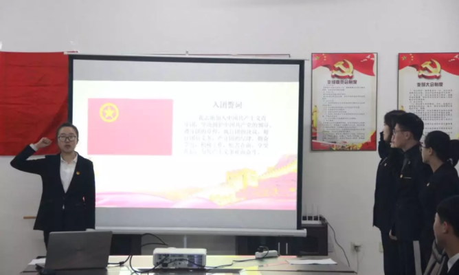 本次仪式的申请人员是在学院培养和考察的基础上,从入团积极分子中,择优确定出的新团员发展对象。申请人员和入团介绍人员就入团动机和个人情况进行汇报后,由学生会副主席、团支书为新团员佩戴团徽,并带领新团员进行入团宣誓。进一步增强了团员的荣誉感、使命感和对团组织的归属感,激发了爱党、爱国、爱团的热情。在庄严的国歌声中,入团仪式落下帷幕。