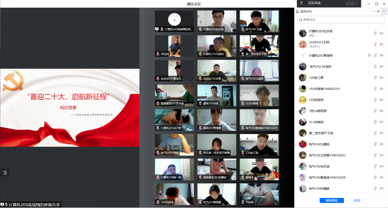 学习百年党史 凝聚奋进力量 6月29日晚,信息与控制工程学院学生党支部采取线上答题形式开展了“喜迎二十大 奋进新征程”党史知识竞赛。竞赛题目涵盖了党史知识、党的路线方针政策等内容。知识竞赛不仅提升了学生党员的理论水平,也对学生党支部建设起到了促进作用。通过此次活动,使广大学生深入领悟了学习党史的重要性,进一步增强了知史爱党、知史爱国,守初心、担使命的思想和行动自觉。学生们纷纷表示,在今后的学习中要牢记使命、坚定理想信念,充分发挥学生党员的先锋模范作用,以昂扬的精神状态、坚定不移的信心决心和优异的成绩向党的二十大献礼。