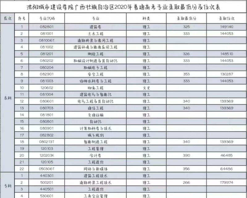 B、beat365正版唯一官方网站广西壮族自治区2020年普通高考专业录取分数线及位次表