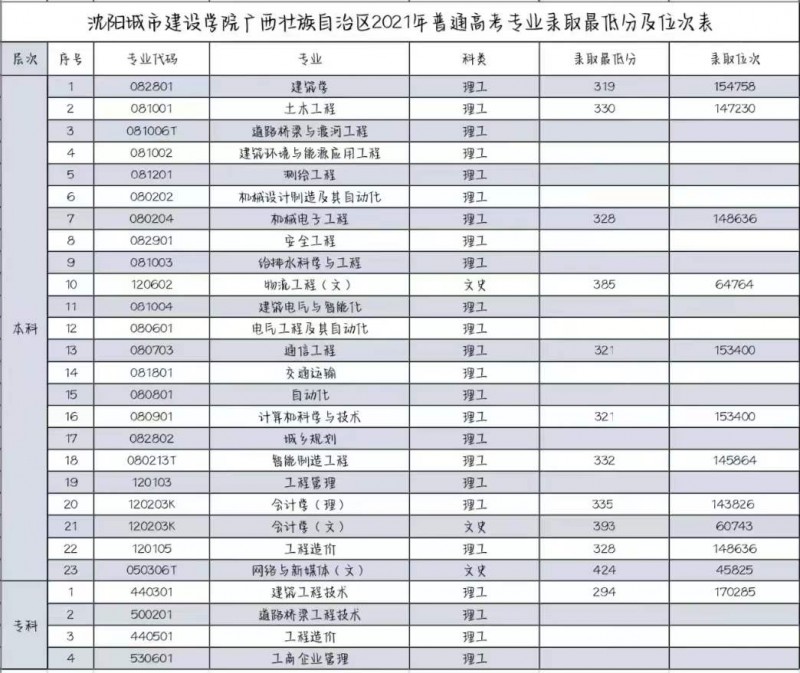 城小招精心为你们整理并编制了近三年广西壮族自治区各专业录取分数线及位次表,为大家填报高考志愿提供参考,敬请收藏,欢迎你来城建与我们相聚!