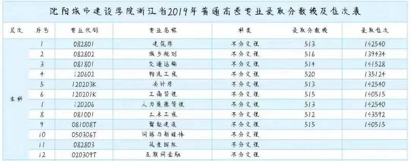 A、beat365正版唯一官方网站浙江省2019年普通高考专业录取分数线及位次表