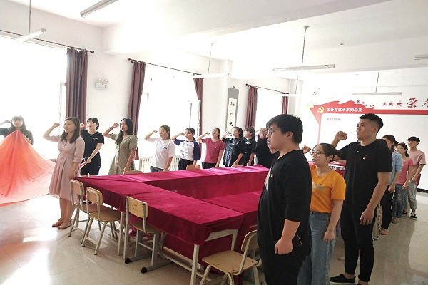 为庆祝中国共产党成立九十八周年,增强师生党员的使命感和责任感,进一步发挥先锋模范作用,设计与艺术系党总支组织师生党员和入党积极分子于7月1日开展主题党日活动。 会上,全体成员在党总支书记的带领下,面对鲜红的党旗,紧握右拳,以昂扬的斗志和饱满的热情,铿锵有力地宣读入党誓词,重温对党庄严而神圣的誓言,让每一位党员的心灵再次受到震撼和洗礼,更加坚定了各位党员为共产主义事业而奋斗的理想信念。 随后,全体教工党员宣誓“牢记全心全意为人民服务的宗旨,时刻以优秀党员的标准严格要求自己,以更加坚定的理想信念和更加饱满的工作热情投入到教育教学工作中,不忘教育初心,牢记教学使命,为共产主义教育事业奋斗终身!”最后,学生党员和积极分子为庆祝建党98周年献歌,合唱《没有共产党就没有新中国》,讴歌中华民族伟大复兴的奋斗历程,弘扬时代美好旋律,坚定爱国、爱党的社会主义信念。全体党员纷纷表示,将力争做到在工作中不断的充实自己,加强党性修养,积极的跟随党的脚步前进,时刻以党员的最高标准严格要求自己。 本次主题党日活动是设计与艺术系“学习实践树形象,服务创新展风采”系列主题党日活动之一,通过本次党日活动,师生党员和积极分子进一步明确了为人民谋幸福,为民族谋复兴的初心和使命,进一步坚定了在岗位上真抓实干,勇挑重担的信心和决心,进一步凸显了基层党组织的战斗堡垒作用!(通讯员:王昌龄)
