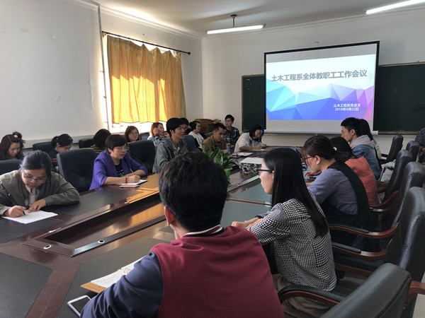 为增强思想政治教育的效果,引导学生树立正确的价值观, 9月22日,土木工程系在第三教学楼会议室召开全体教职工工作会议。会议由党总支书记、副主任孙赫主持,副主任赵中华和土木系全体教职工参加会议。