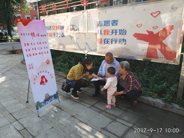 为进一步推进创建文明城市的步伐,自“创城”行动启动以来,市政与环境工程系党总支积极响应号召,以“两学一做”系列主题教育为契机,深入沈阳社区内部进行志愿服务活动。9月16日,市政与环境工程系党总支联合南湖街道文化路社区,开展创城宣传及调查问卷活动。