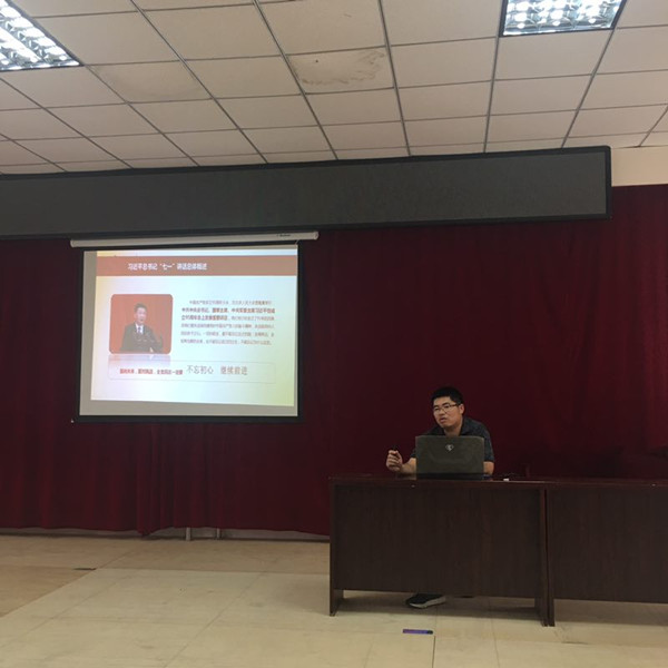 为进一步统一思想认识,切实做到不忘初心、牢记宗旨,6月30日,在中国共产党成立96周年之际,环境系党总支举行“不忘初心 继续前行”主题教育活动,环境系党总支书记胡伟为全体师生党员讲授题为《习近平总书记七一讲话精神解读》的党课。