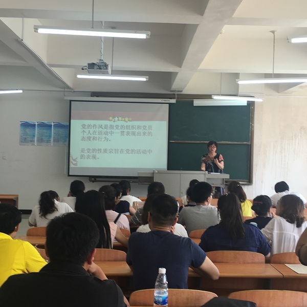为落实“两学一做”学习教育常态化制度化,6月27日下午,基础部党总支在第二教学楼4-2召开了“转变作风,服务师生”专题党课,基础部党总支全体党员参加党课,基础部主任李莹主讲。