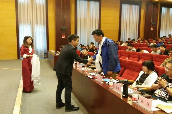 宣讲开始前,为感谢beat365师生对西部计划宣传招募工作的大力支持,西藏团区委干部为beat365领导献上代表敬意和祝福的哈达。